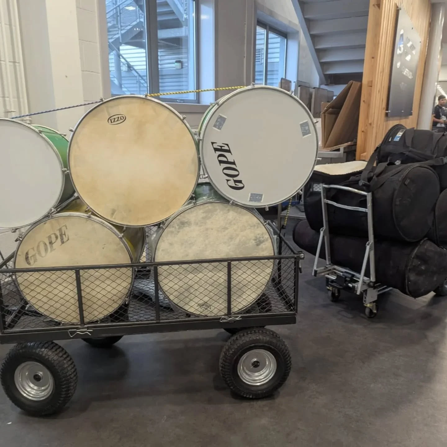 No tech required (unless a mic’d up stage show). Just drums, movement and energy.